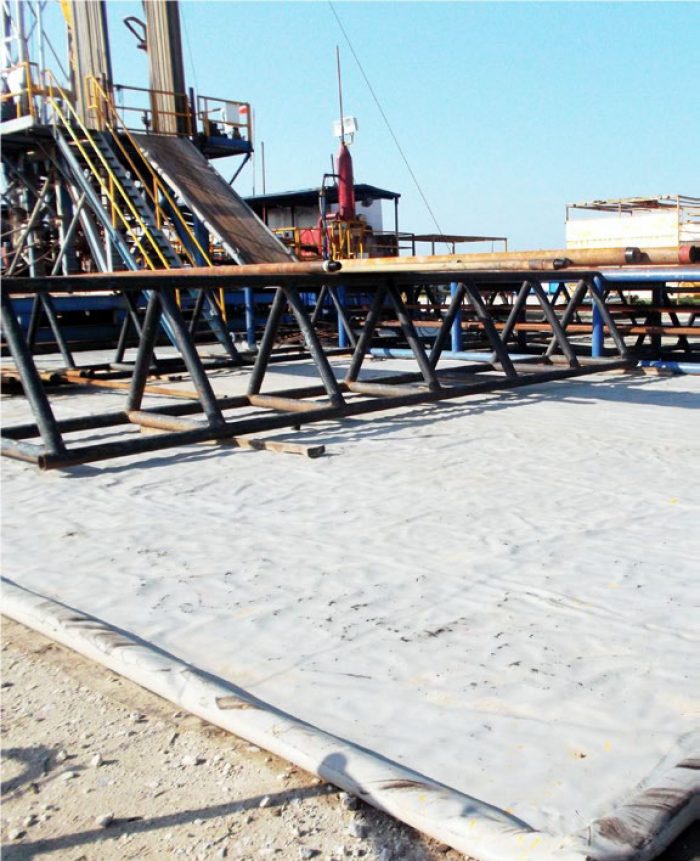 Trabajos de protección al suelo mediante el uso de impermeabilizante en intervenciones de perforación, mantenimiento, reparación y terminación de pozos en la región.